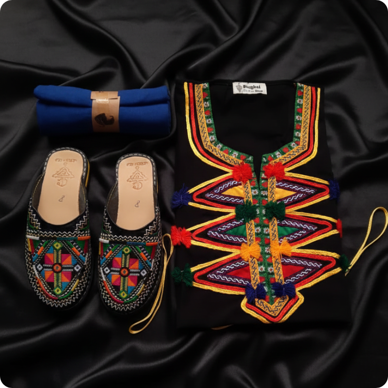 طقم أمازيغي كامل – قميص مزخرف + حزام تقليدي