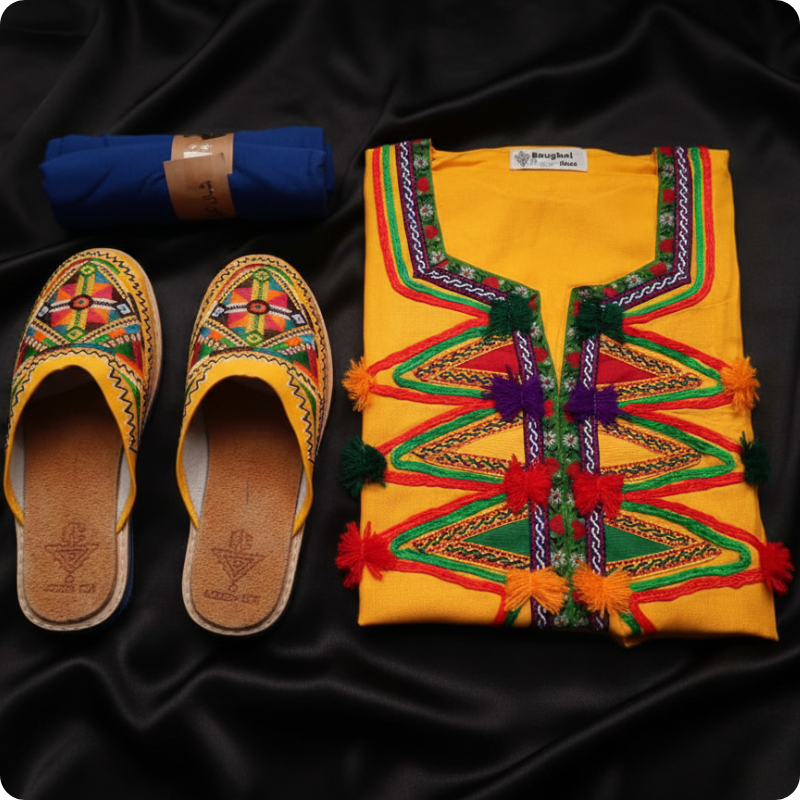 اكتشفي الجمال الخالد للتراث الأمازيغي مع هذا الطقم التقليدي المميز الذي يجمع بين الأناقة، الأصالة، والراحة في آن واحد.