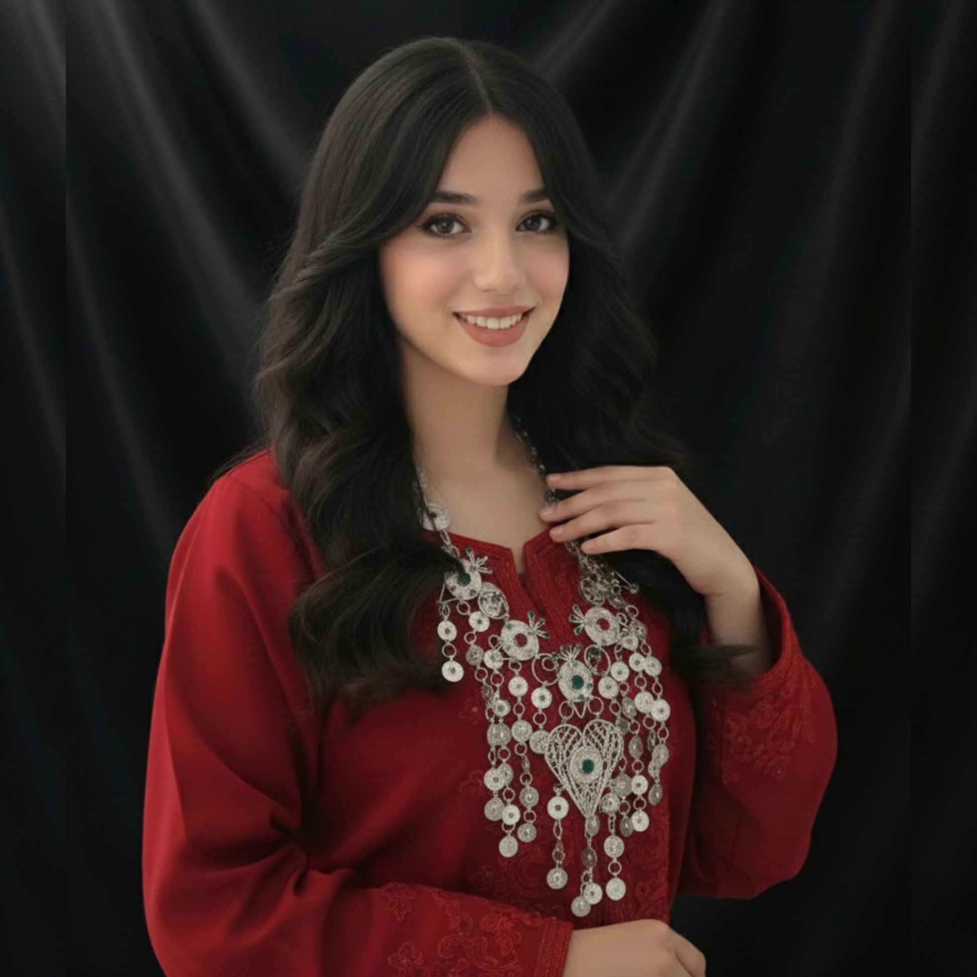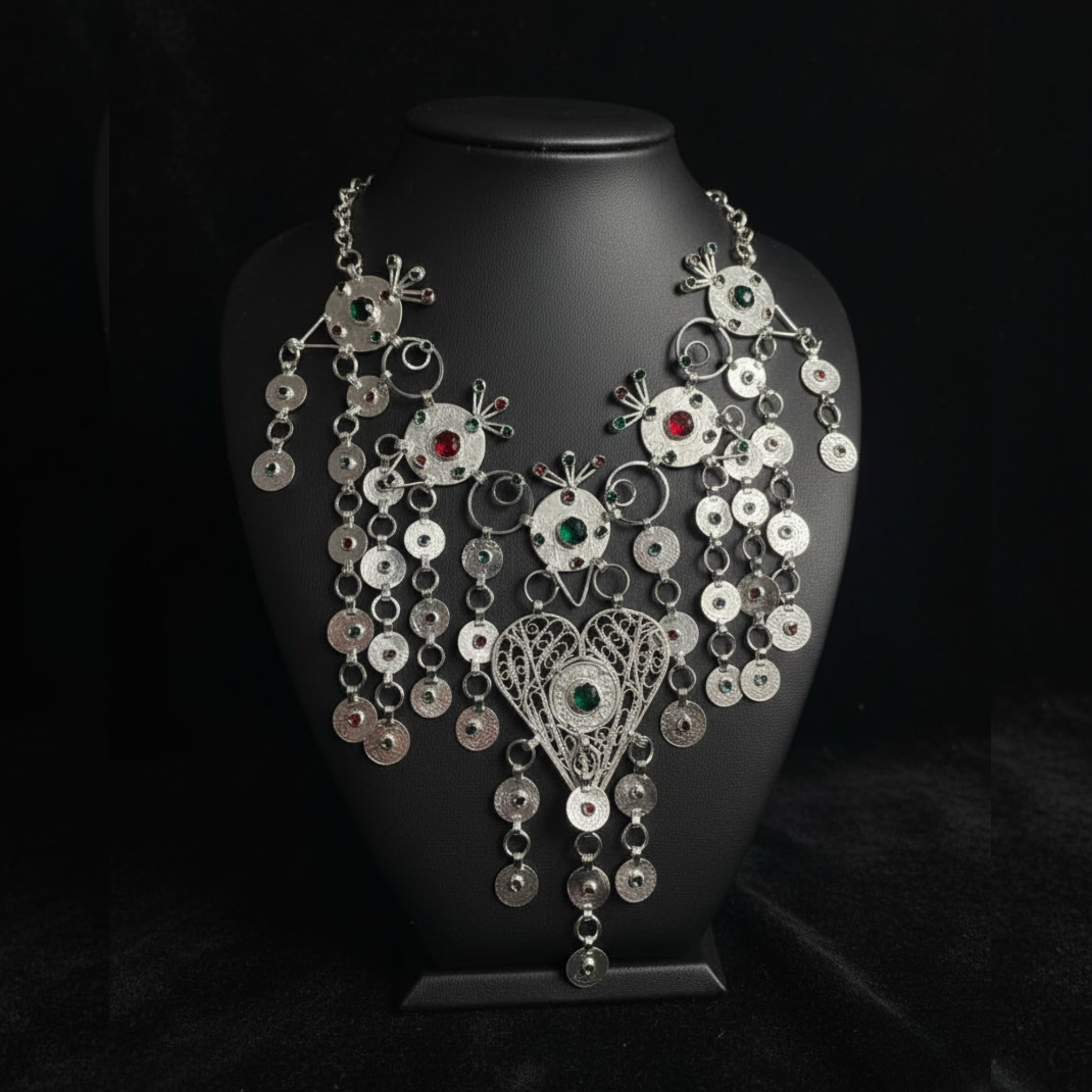 أضيفي لمسة من التراث الأمازيغي الأصيل إلى إطلالتك مع قلادة أحلاب التقليدية، قطعة مستوحاة من ثقافة سوس، تحمل في تصميمها توازنًا بين الجمال والذاكرة، وبين الزينة والمعنى.